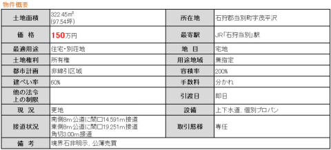 石狩郡当別町字茂平沢